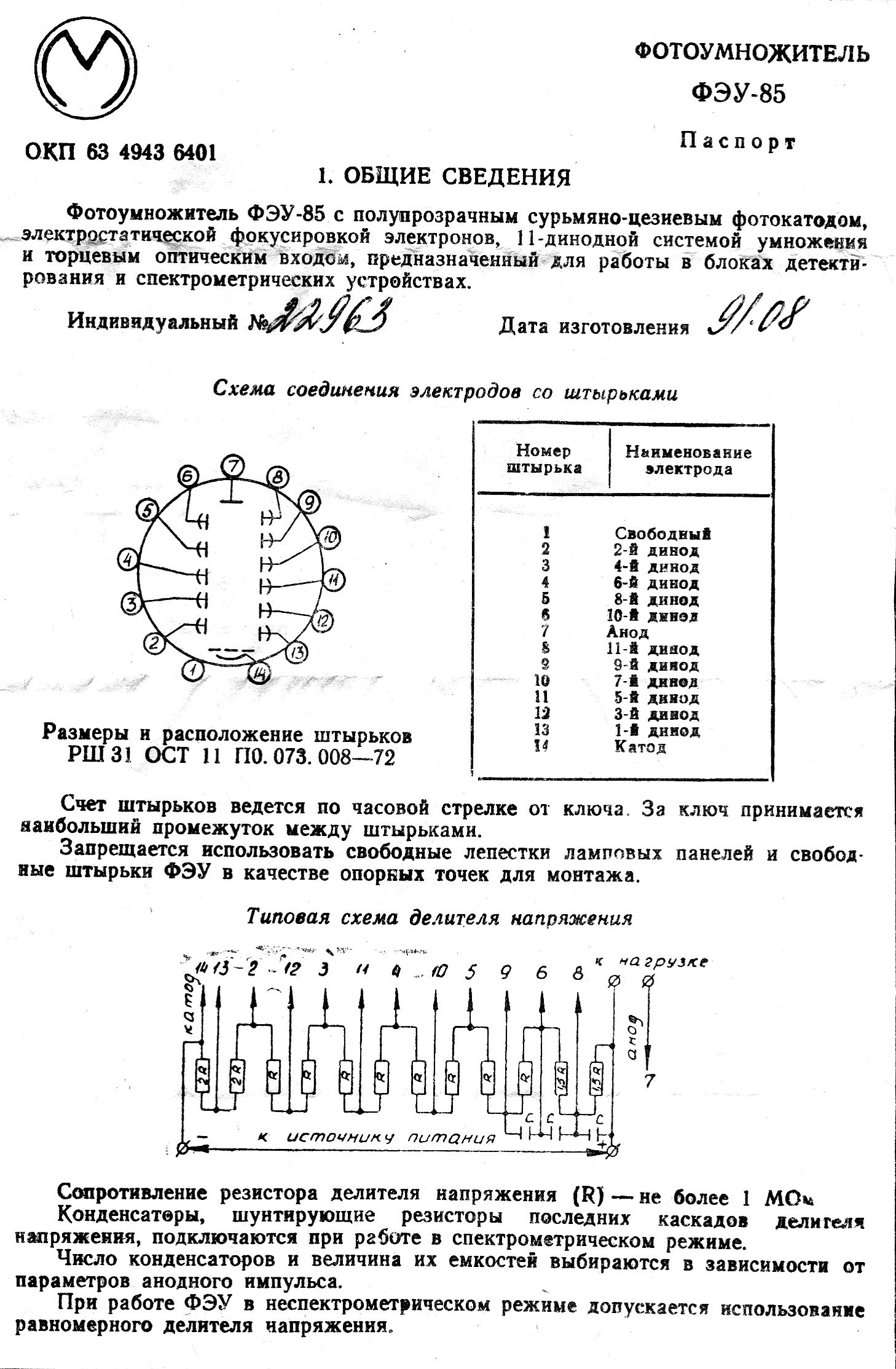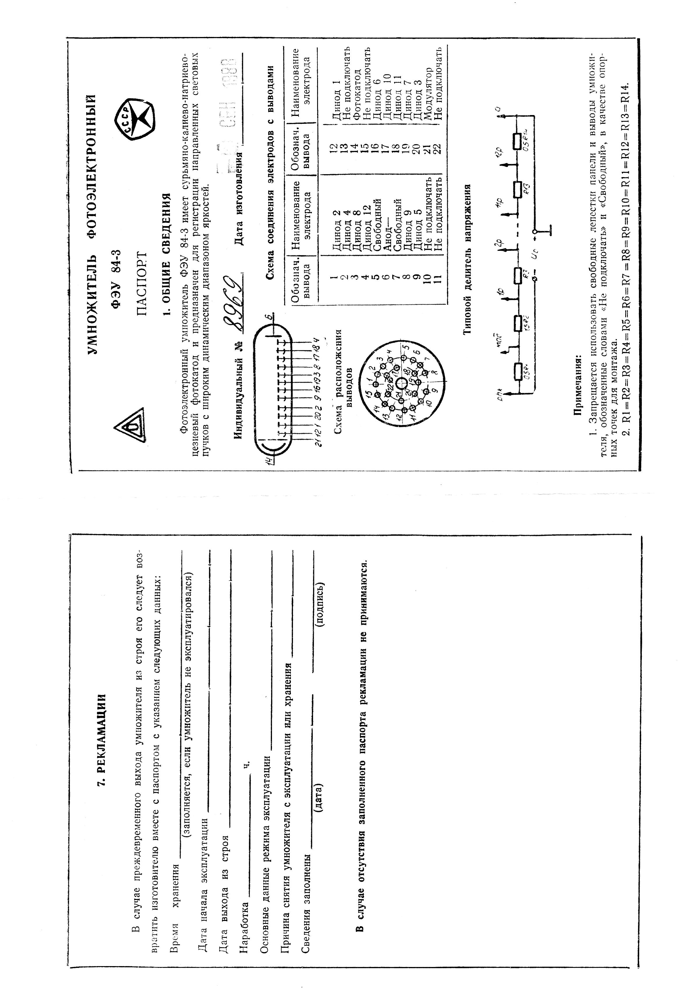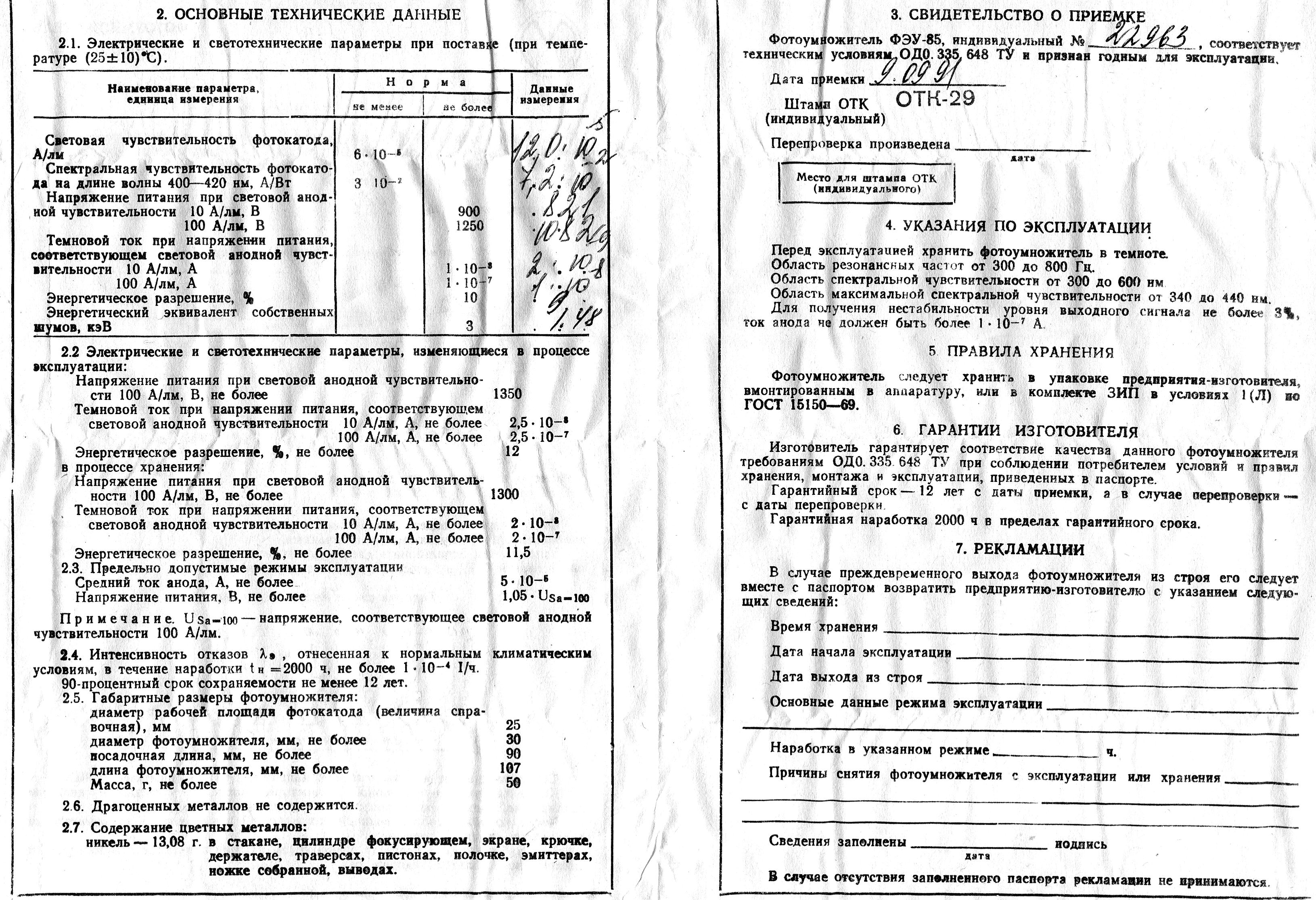 The FEU-84-3 parameters: