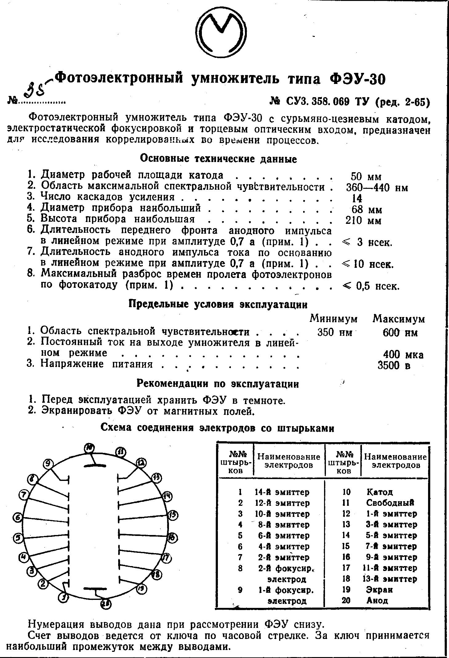 The FEU-30 parameters: