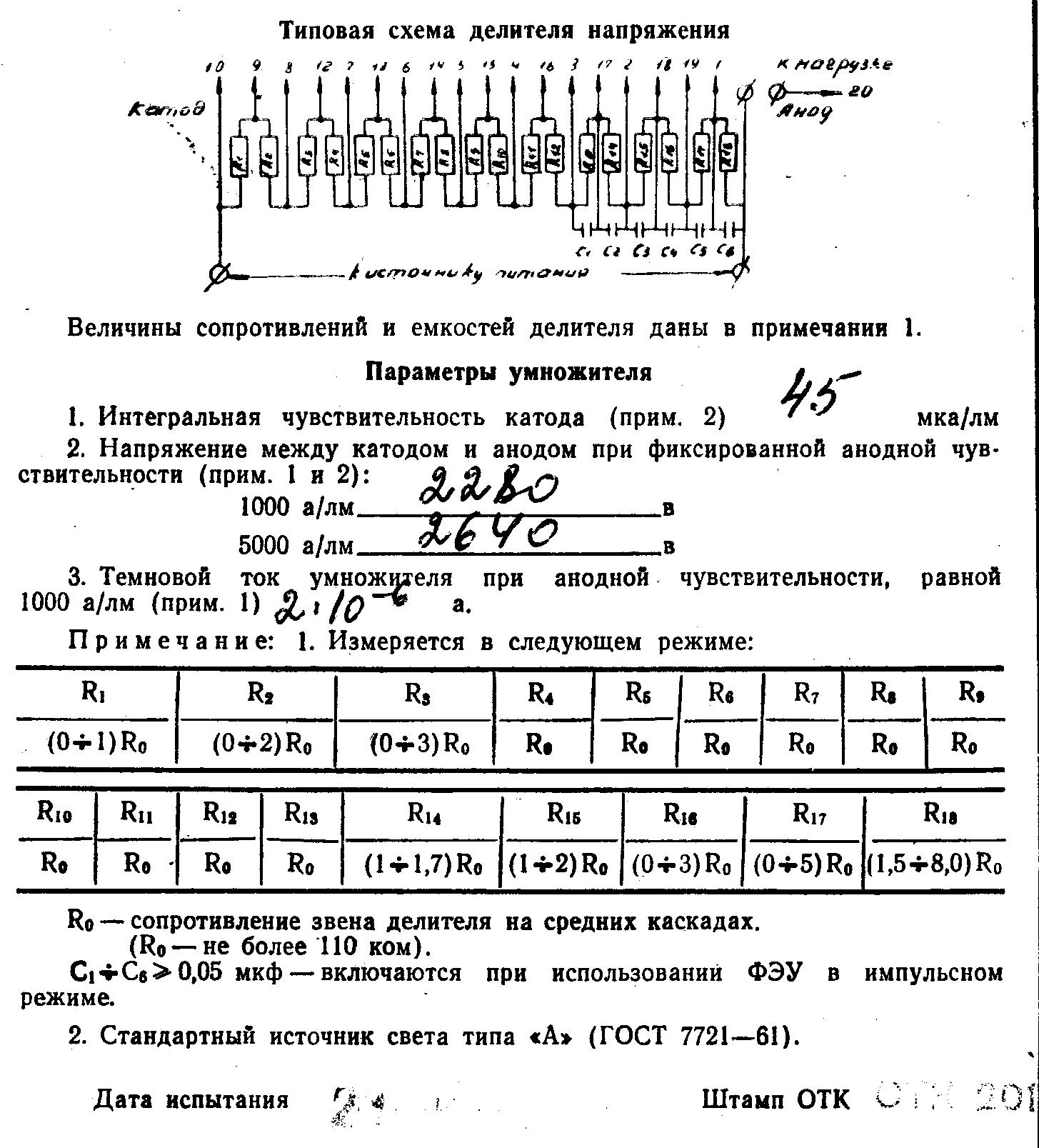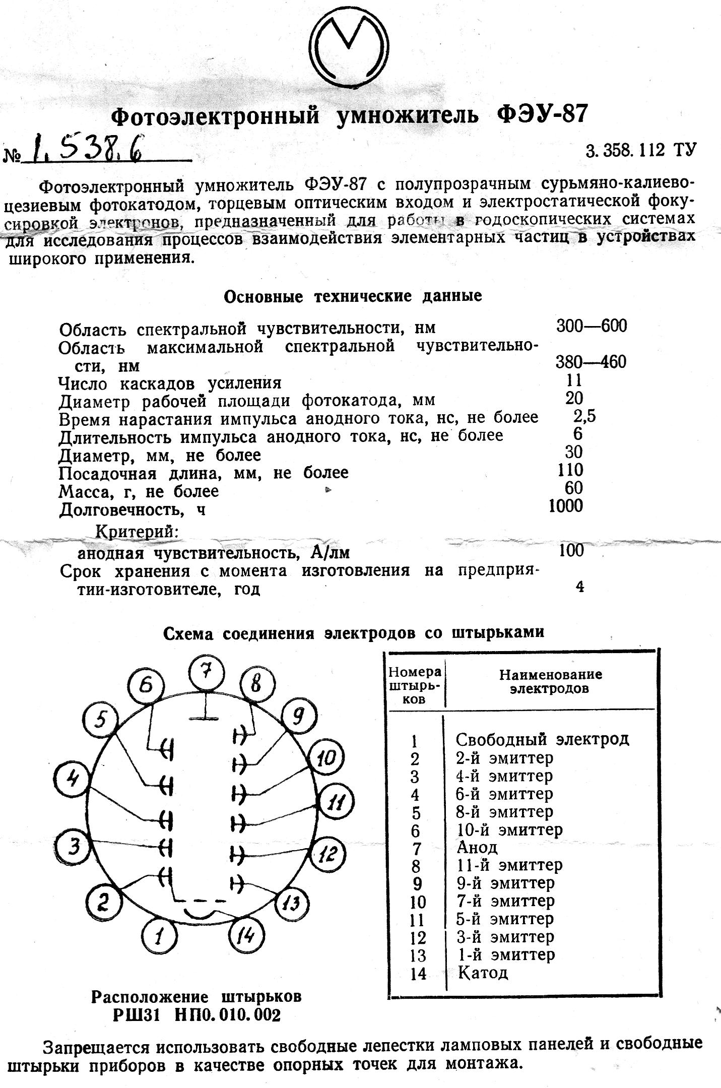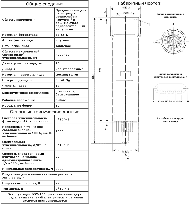 The FEU-130 parameters: