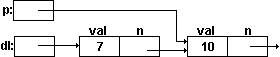 dl->val=7; dl->n=p;