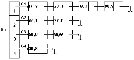 Рис.25. Связанно-связанное связанное индексное хранение списка.