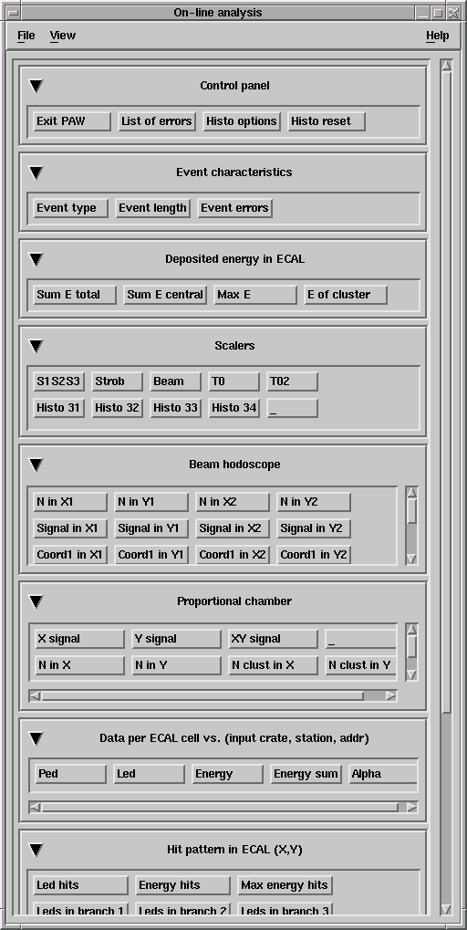 Histograms either the HBOOK file ol_analysis.his or from the global section 'ONL' can be read by paw. The list of histogram is as follows: